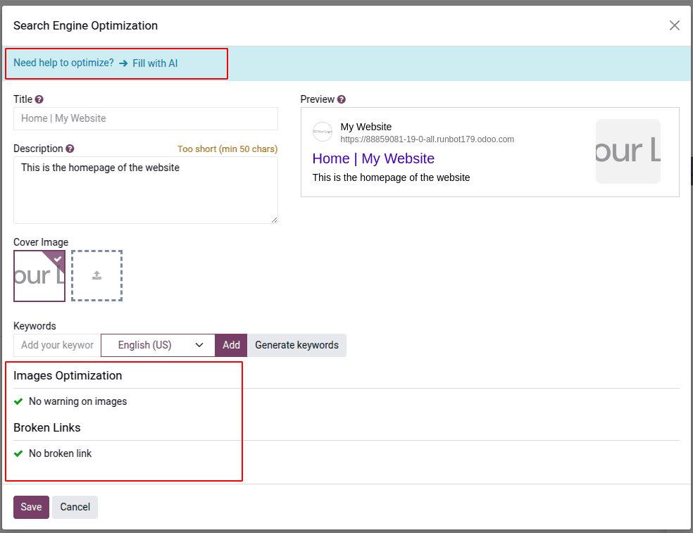 - Odoo 19 también traerá grandes mejoras a SEO - desde comprobaciones automáticas de SEO y accesibilidad hasta información detallada, la nueva versión estará lista para optimizar el ranking de su sitio web.