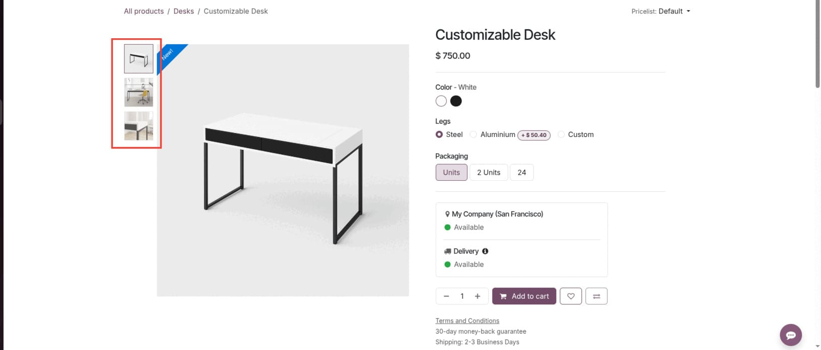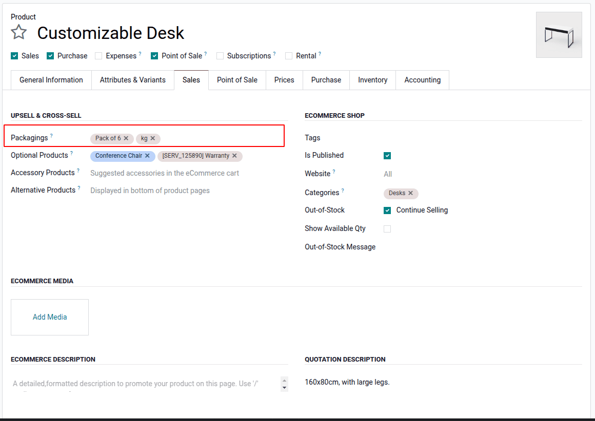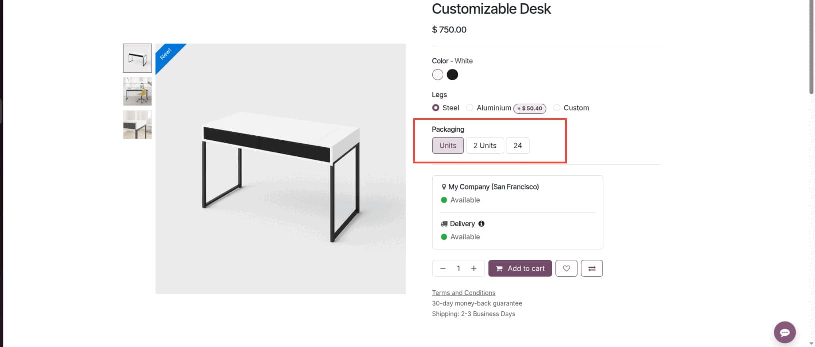 Una de las mejoras más prácticas en Odoo 19 es el selector de la Unidad de Medida (UoM). Esto permite a los clientes elegir cómo quieren comprar un producto, por ejemplo, por unidad, caja o peso, directamente desde la página de la tienda. Es especialmente útil para las empresas que venden a granel o a través de múltiples opciones de embalaje, dando a los compradores flexibilidad sin necesidad de enumerar los productos separados.